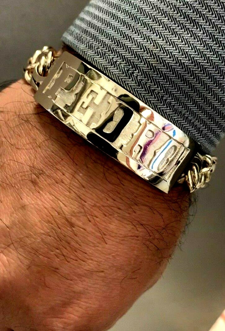 925 Sterling Silver Id Bracelet Chino Link Silver Bracelet Etsy